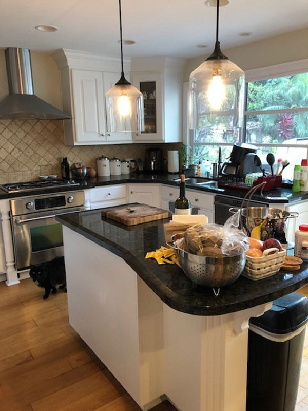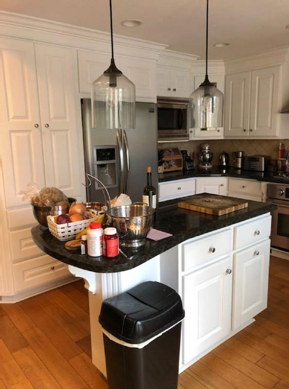 Problems Solved: Client wanted an island but due to the narrow space between cabinets, she opted for a rolling car which offered more flexibility than the previous fixed island.