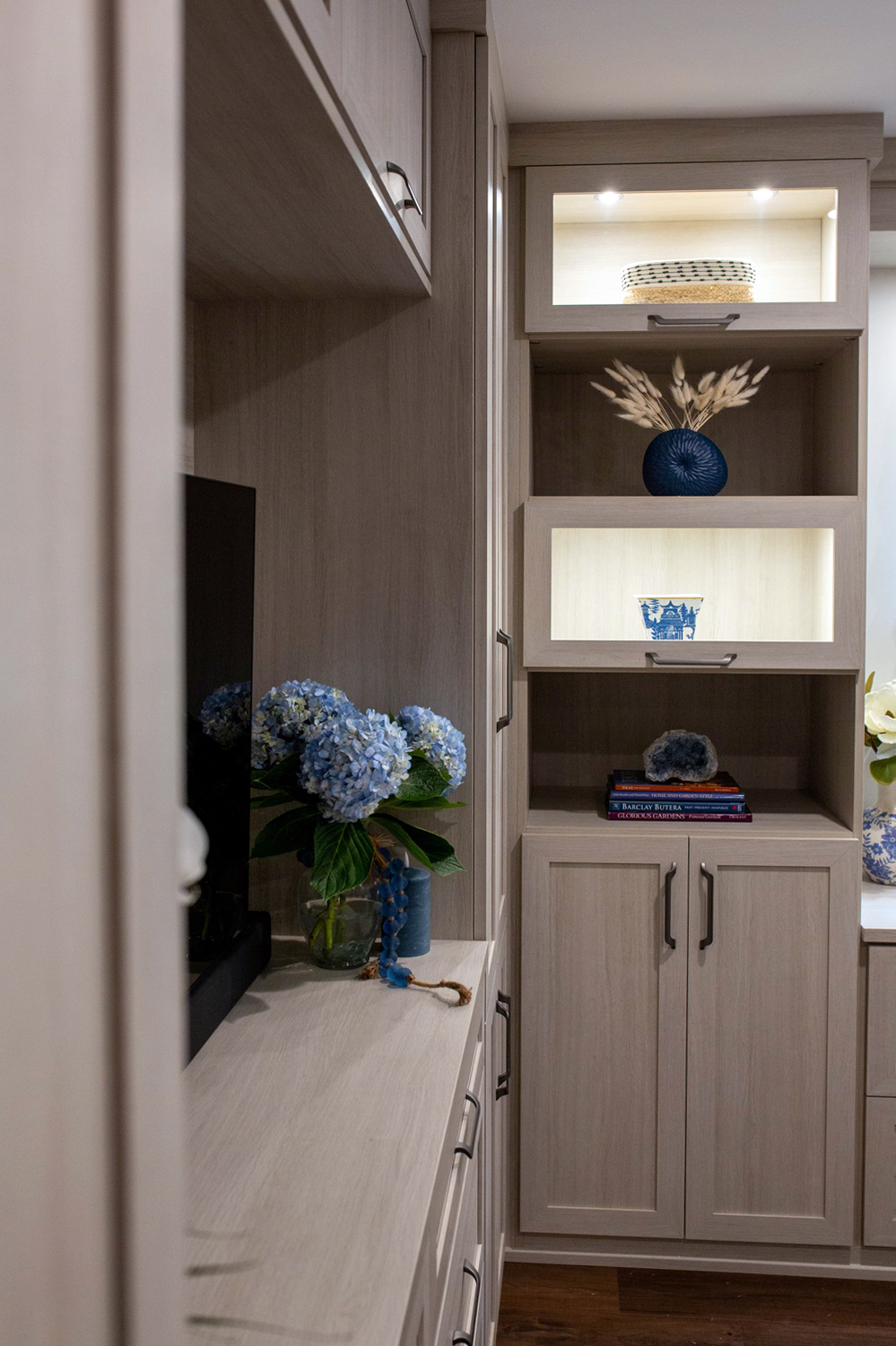 - Cabinets- California Closet- white and blue combo tones