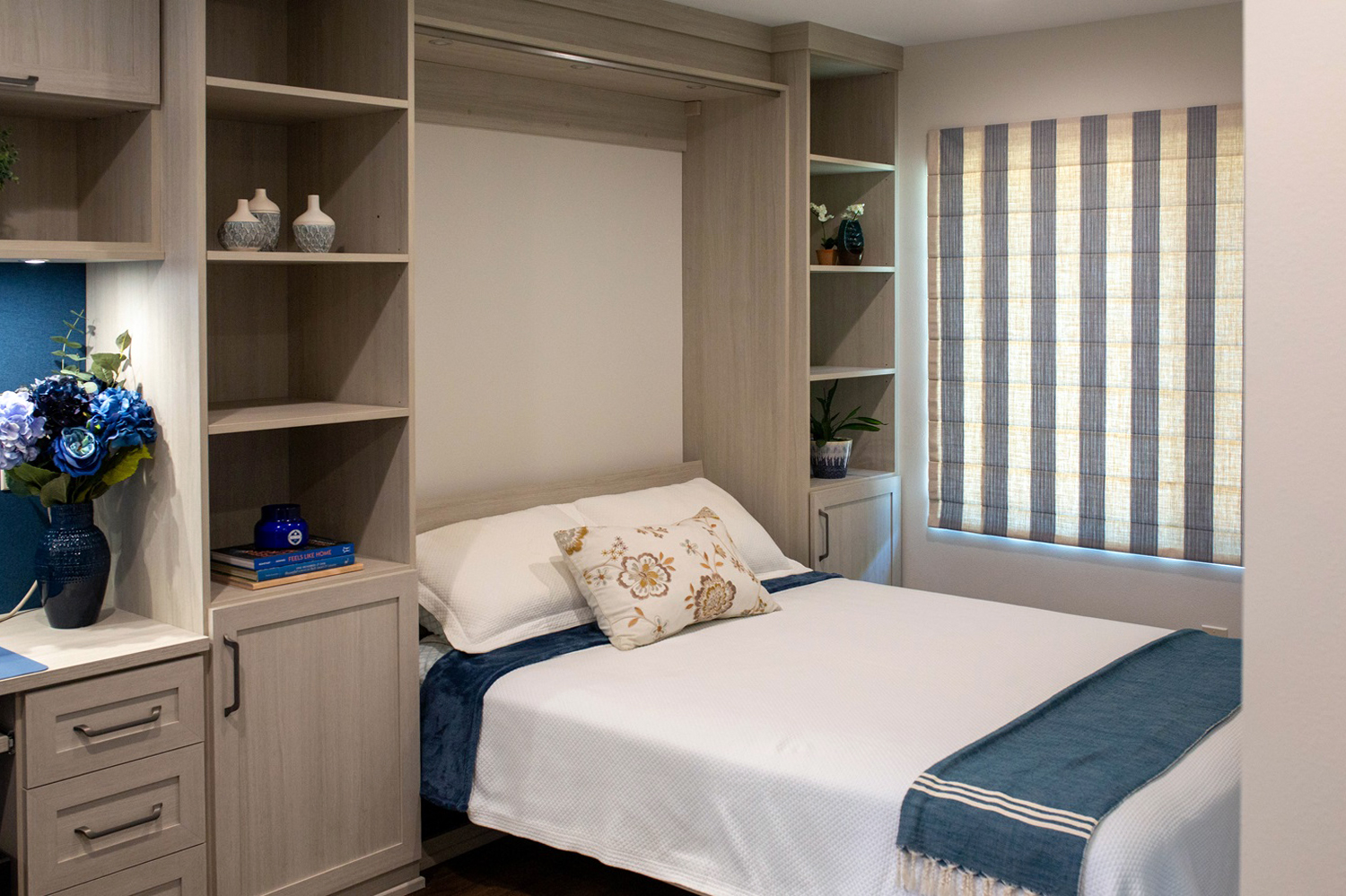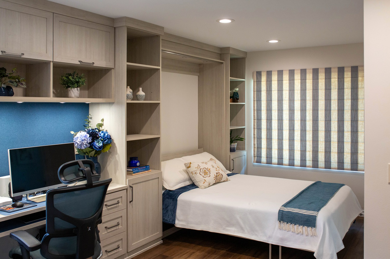 - Queen sized Wall Bed with soft close mechanism / tilt-out front panel