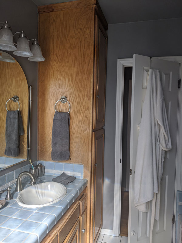 Problems Solved: Client wanted an area to sit and get ready for her day. We created a custom built-in seating area with plenty of storage