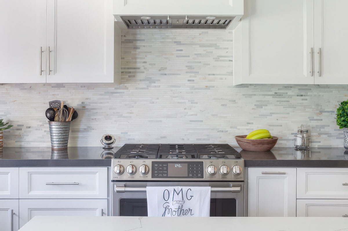 Color-coordinated backsplash, cabinets and countertops